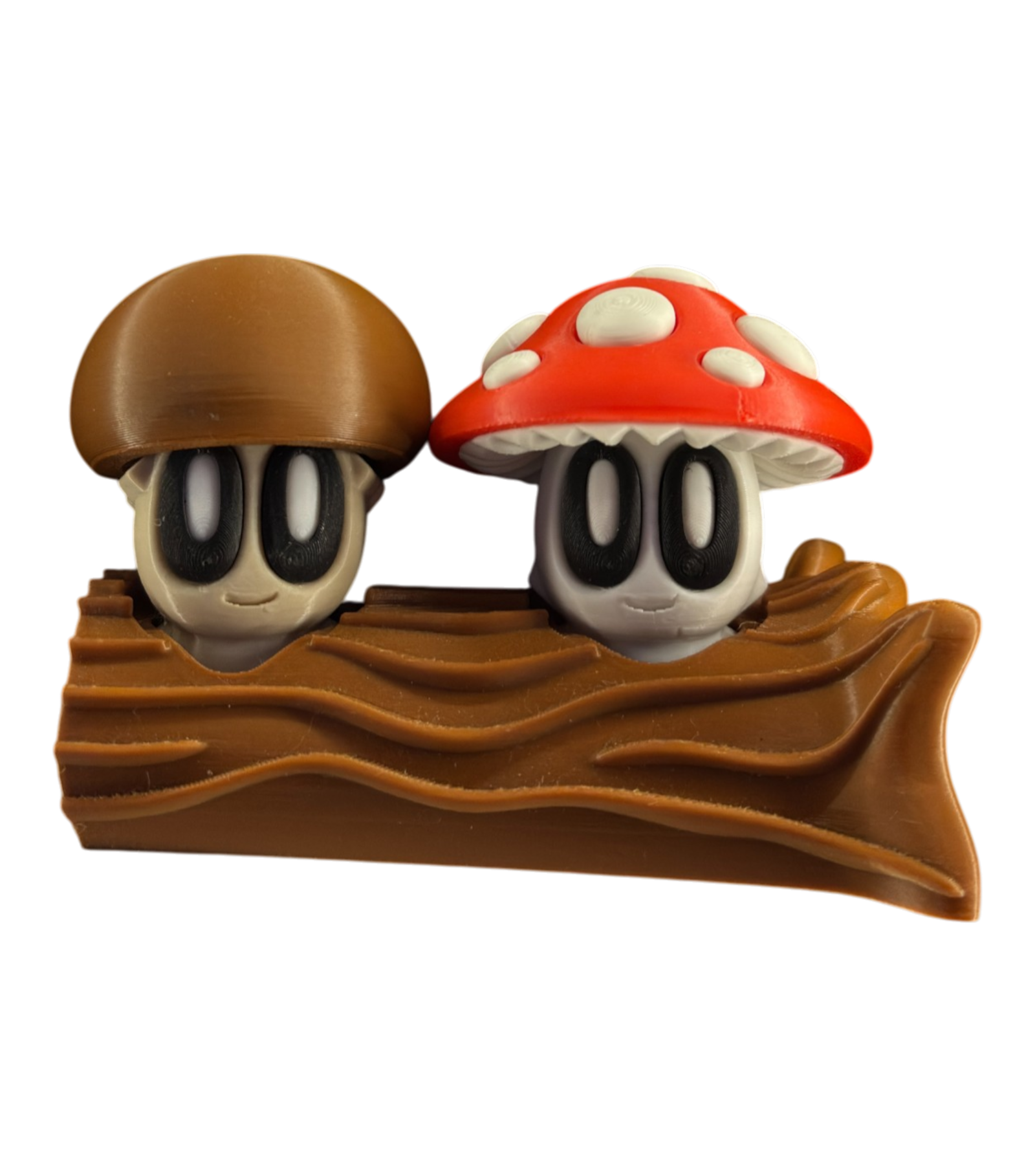 Pack de figuras decorativas con personajes estilo Trizas que emergen desde un tronco con diseño de hongos. Ideal para decoración o colección.